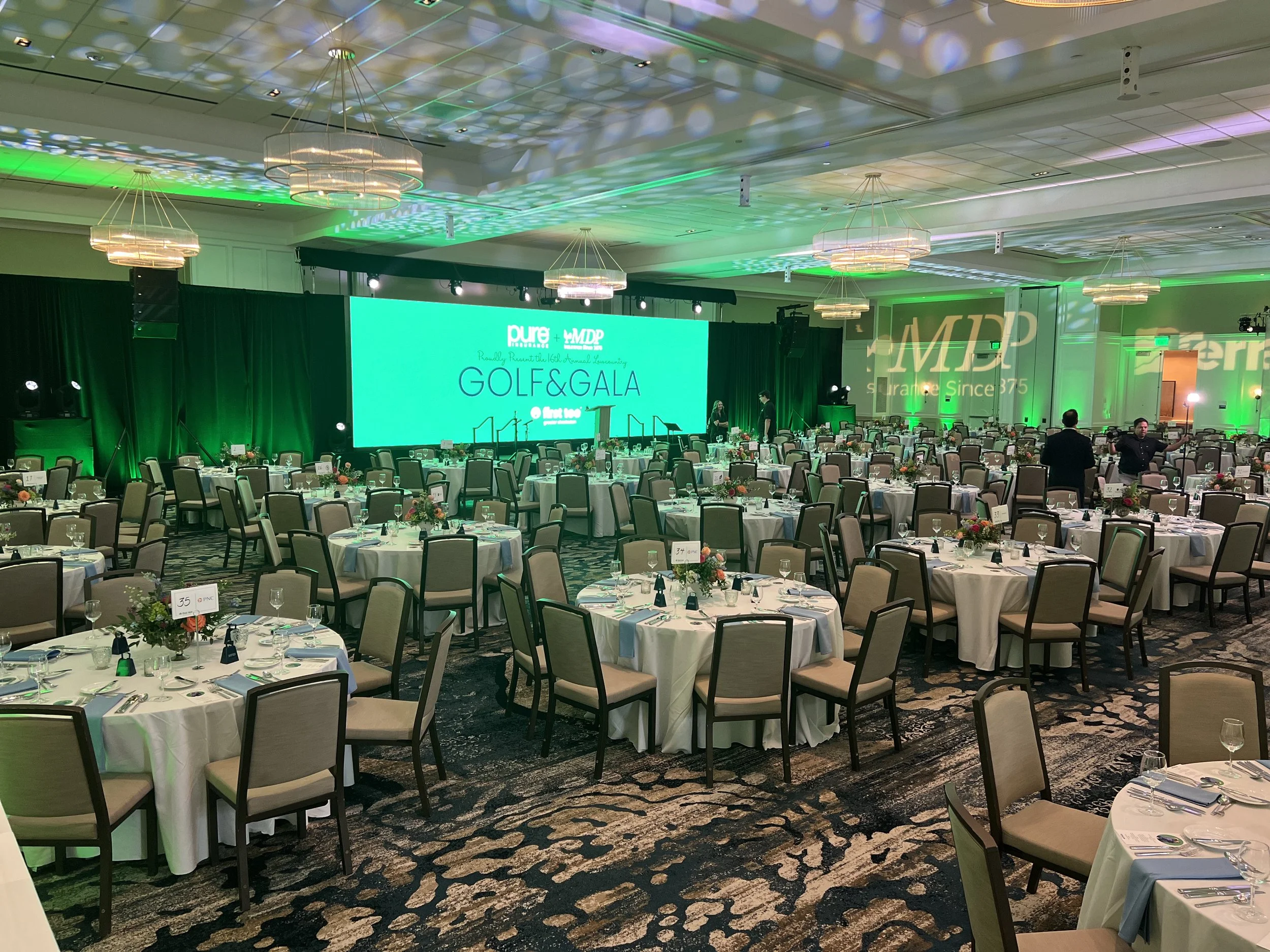 • Sophisticated social gala production in South Carolina with decorative LED uplighting and high-end event audio services.